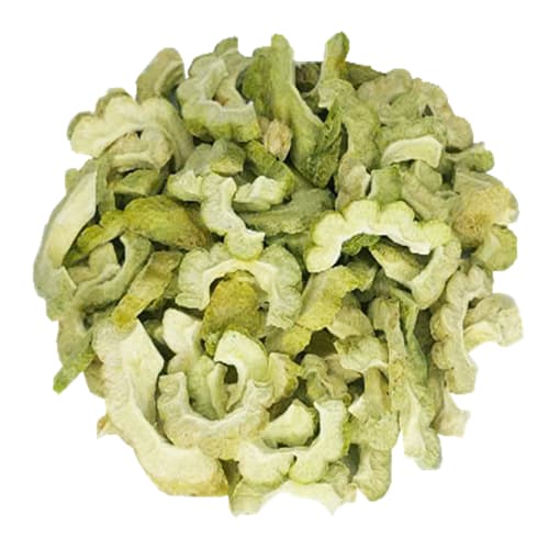 Nhờ công nghệ sấy thăng hoa, khổ qua giữ lại độ giòn hấp dẫn, vị đắng dịu nhẹ, thơm đặc trưng và không mất đi dưỡng chất.