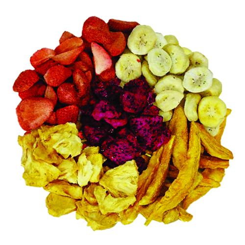 Trái cây sấy giòn gồm các loại dâu tây, chuối, xoài, thanh long và thơm, được sấy ở dạng cắt miếng tiện lợi, giữ nguyên màu sắc và hương thơm tự nhiên đặc trưng của từng loại quả. Trái cây sau khi thu hoạch được xử lý vệ sinh kỹ lưỡng, loại bỏ tạp chất, rồi đưa vào quy trình sấy thăng hoa tiên tiến, giúp sản phẩm giòn rụm mà vẫn bảo toàn tối đa dưỡng chất.